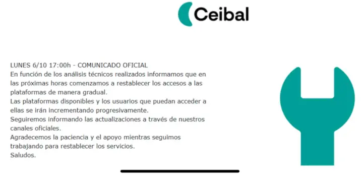 Se comparte comunicado oficial emitido por CEIBAL.