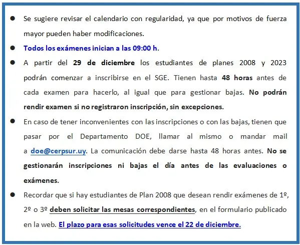 Exámenes y evaluaciones - Febrero 2026